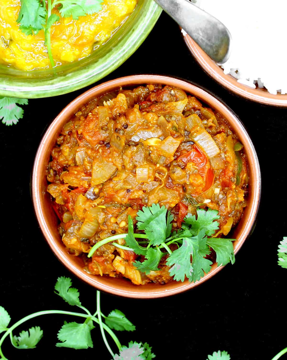 Egg plants roasted in tandoor and cooked with Kathmandu bistro's herbs, spices & touch of cream