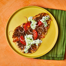 Bread stuffed with cheese topped with chopped fresh garlic & cilantro