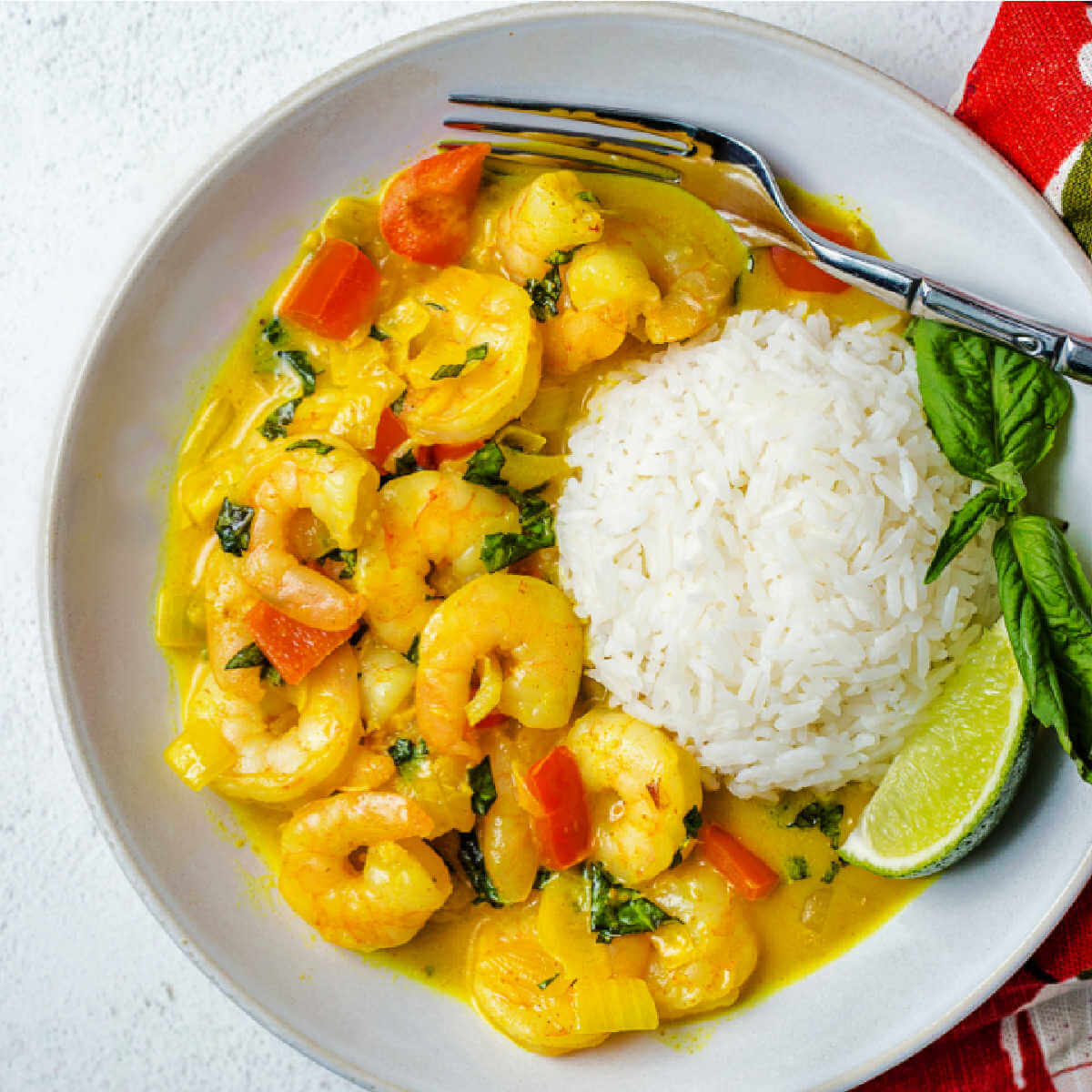 Fresh mixed vegetables gently cooked in special blend of creamy sauce, cashew & coconut powder (with Rice)
