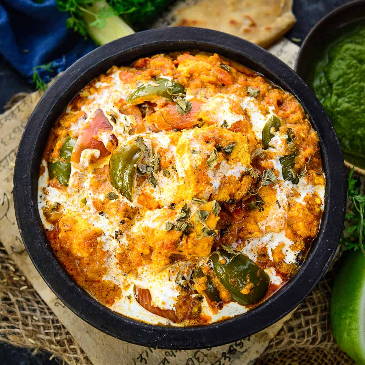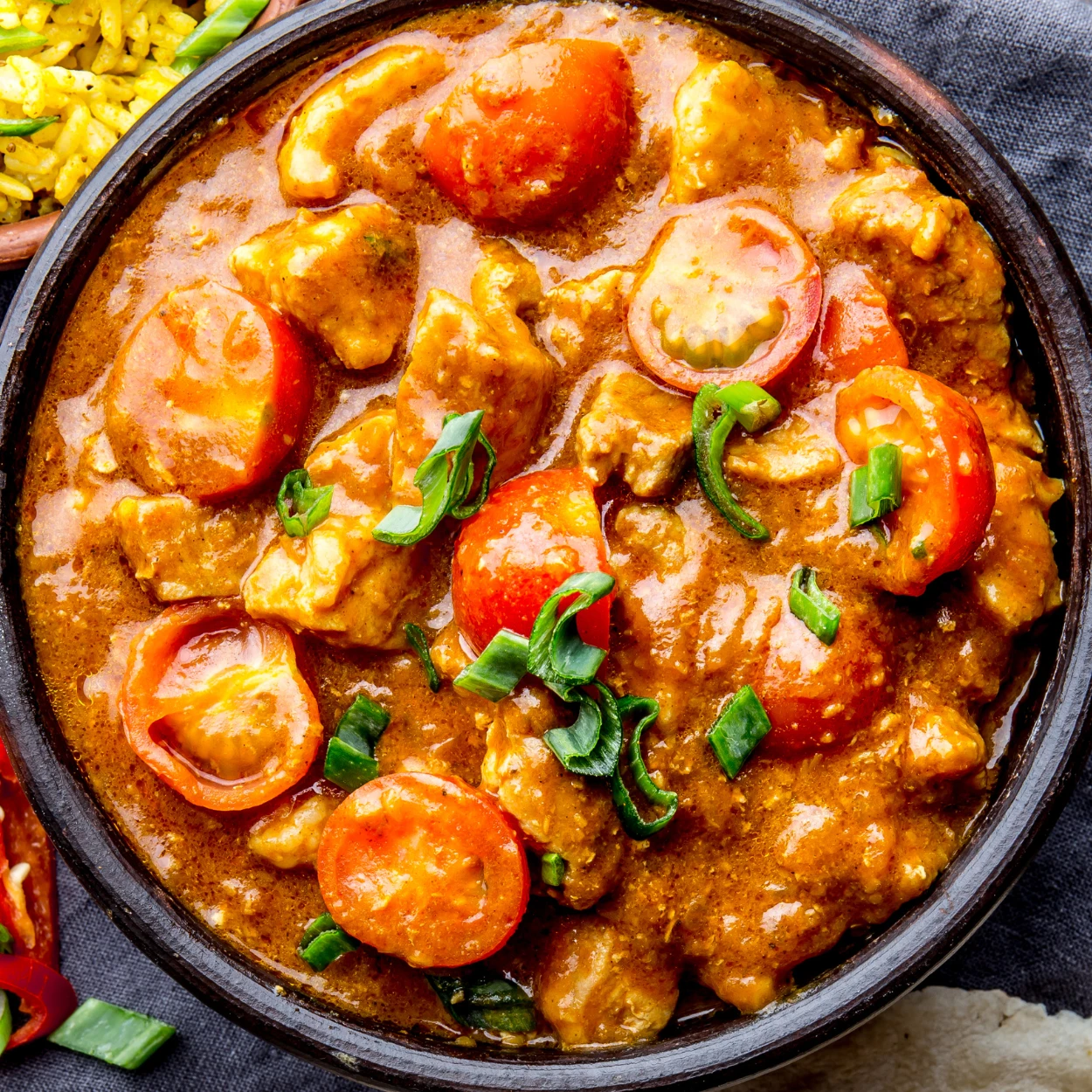 Chicken thai cooked in special gravy, onion, tomatoes anill bell peppers