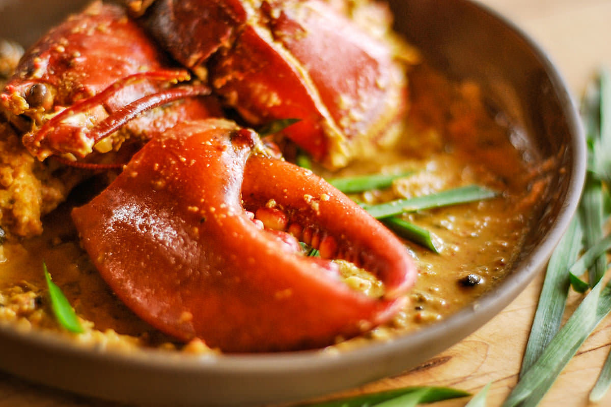 Tasty lobster tail cooked with fresh tomato and onion sauce in creamy sauce