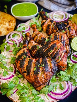 Shrimp marinated in a yogurt and curry spices, cooked in a tandoori oven